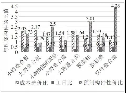 圖4 預(yù)制構(gòu)件與現(xiàn)澆構(gòu)件各項(xiàng)經(jīng)濟(jì)比